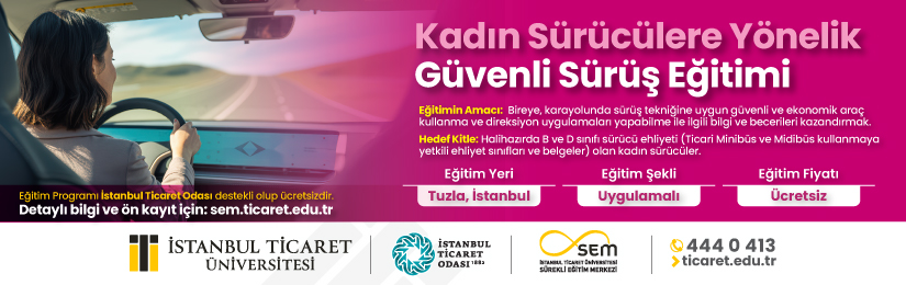 İstanbul Ticaret Üniversitesi Sürekli Eğitim Merkezi (SEM) ve İstanbul Ticaret Odası 22 No’lu Şehiriçi Yolcu Taşımacılığı Meslek Komitesi iş birliğinde, kadın sürücülere yönelik Güvenli Sürüş Eğitimi programı düzenlenmektedir.